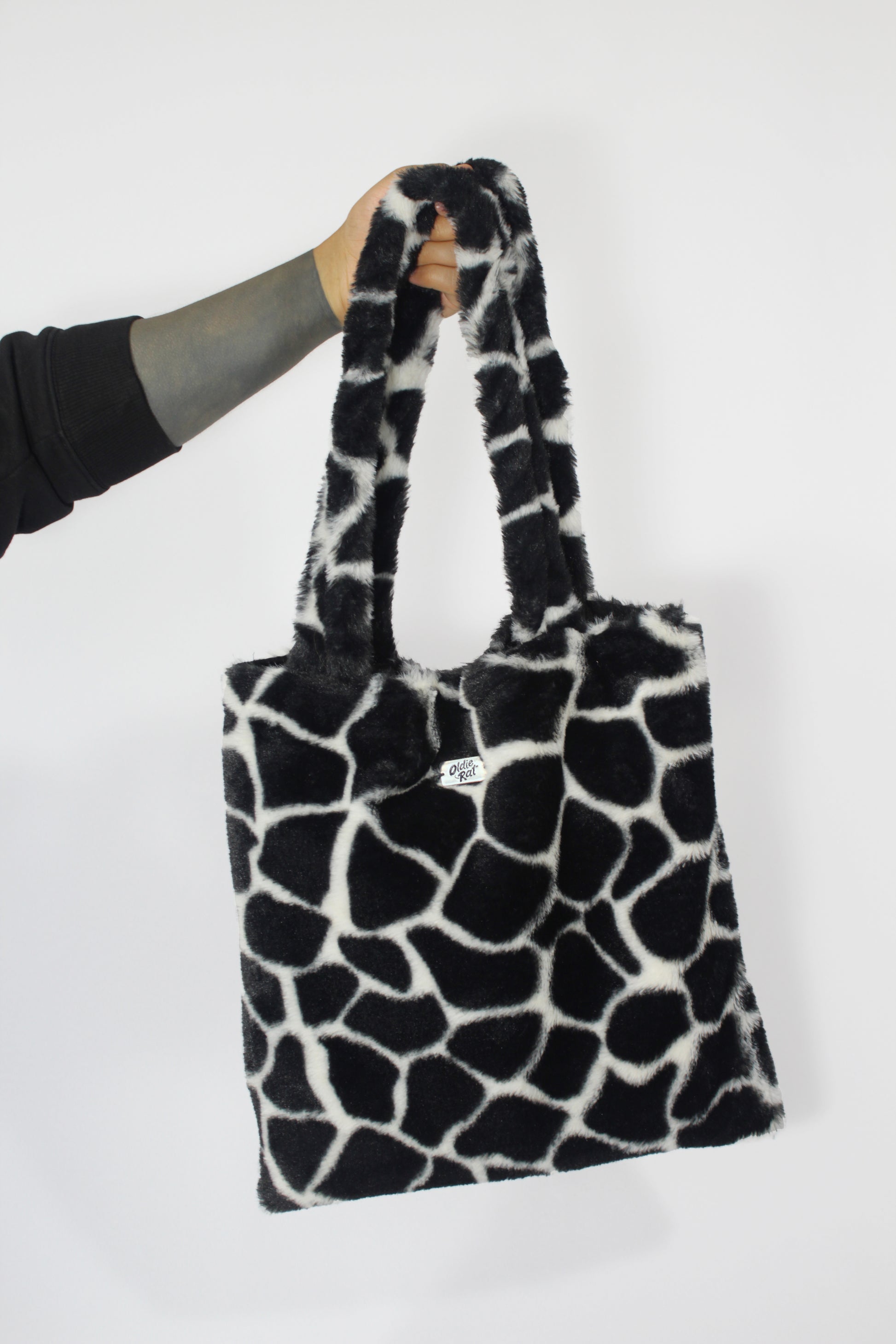 Lleva el lado más salvaje de tu estilo con este tote de felpa en animal print jirafa. Suave al tacto, con tonos blaco y negro que combinan con todo, es la pieza statement perfecta para destacar sin esfuerzo.