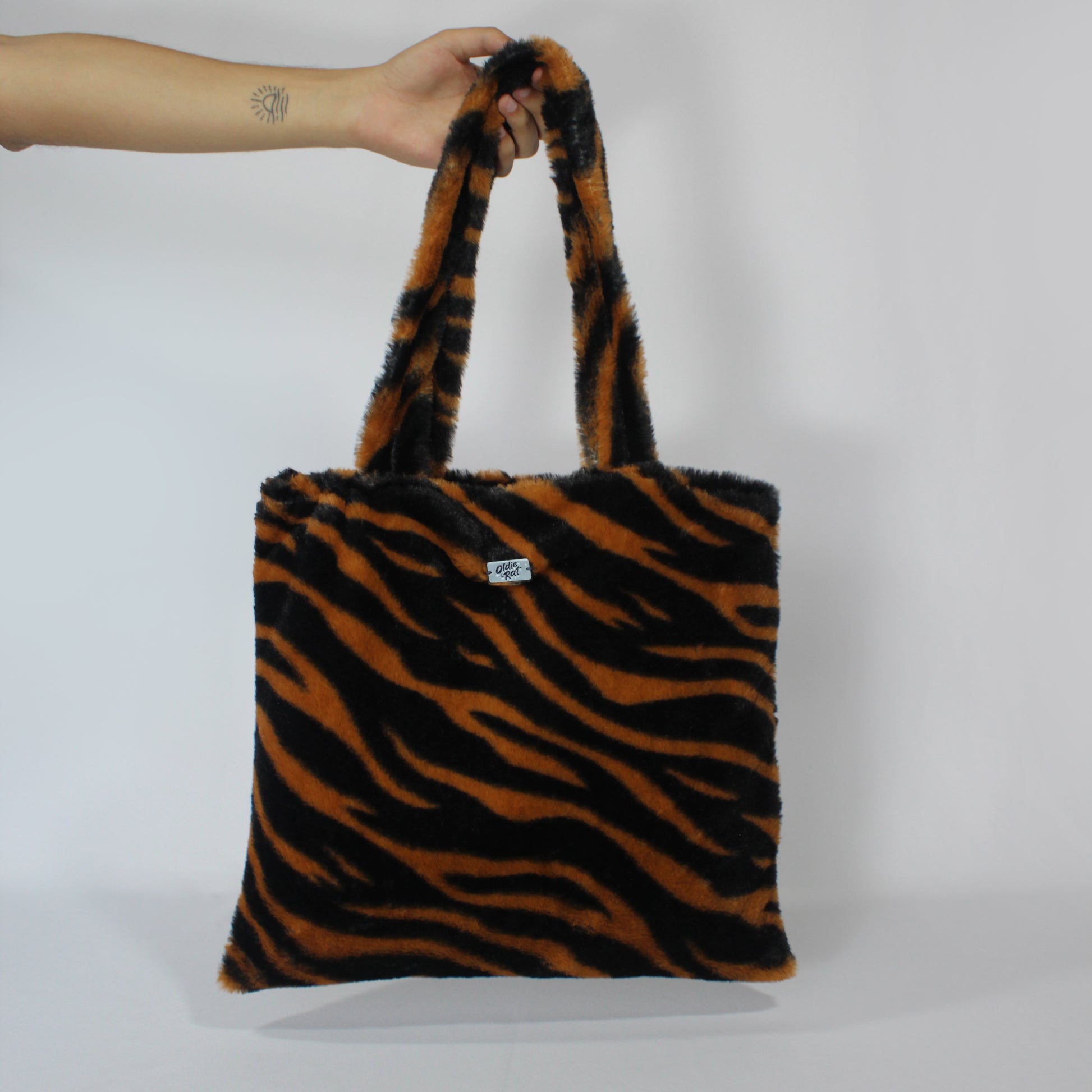 Lleva el lado más salvaje de tu estilo con este tote de felpa en animal print tigre. Suave al tacto, con tonos café y negro que combinan con todo, es la pieza statement perfecta para destacar sin esfuerzo.
